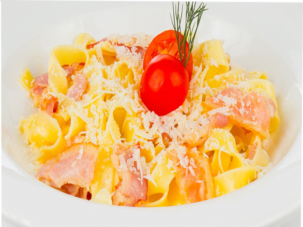 Феттучини в нежном сливочном соусе с беконом и сыром "Пармезан".300г.