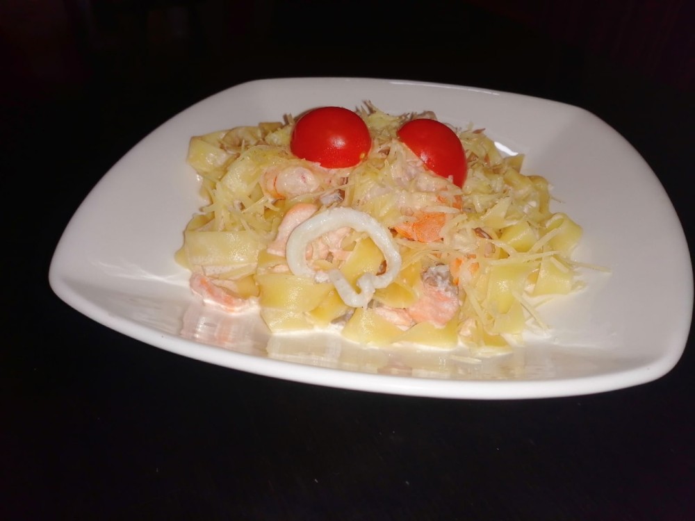 Фетучини с морепродуктами.